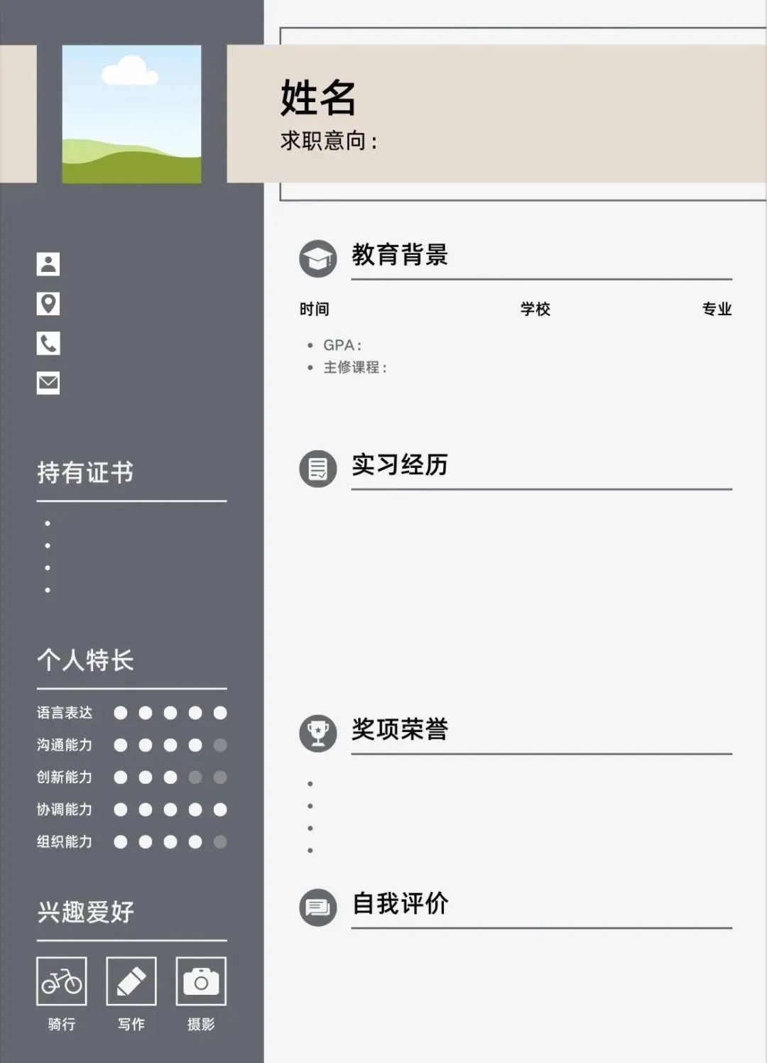 照片(证件照、避免生活照)