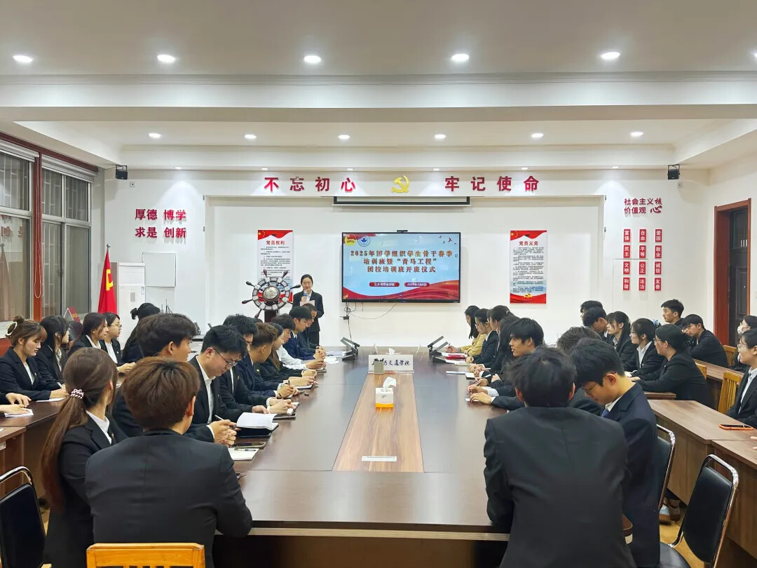 5月8日,土木与交通学院2025年团学组织学生骨干春季培训班暨“青马工程”团校培训班开班仪式在6104教室顺利举行。党委副书记卢永波、团委副书记张梦瑶出席活动。
