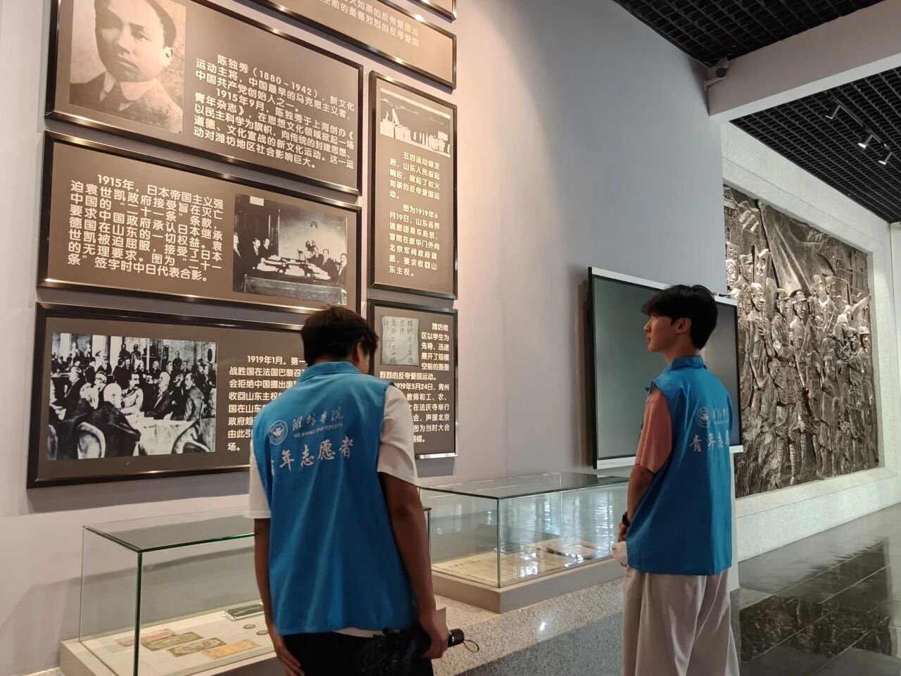 队员们缓步瞻仰烈士墓区,认真聆听潍县战役等重大历史事件中先烈们浴血奋战的英勇事迹。一件件斑驳的遗物、一幅幅珍贵的图片、一段段详实的史料,在潍坊革命烈士纪念馆内无声诉说着那段烽火连天的峥嵘岁月。当看到年轻战士留下的家书、简陋的战斗装备时,实践队员同学深受触动:“触摸这些历史的痕迹,才真切感受到‘信仰’二字的分量。他们用青春和生命照亮了民族前行的路,这份忠诚与担当,是我们必须接续传递的精神火炬。”
