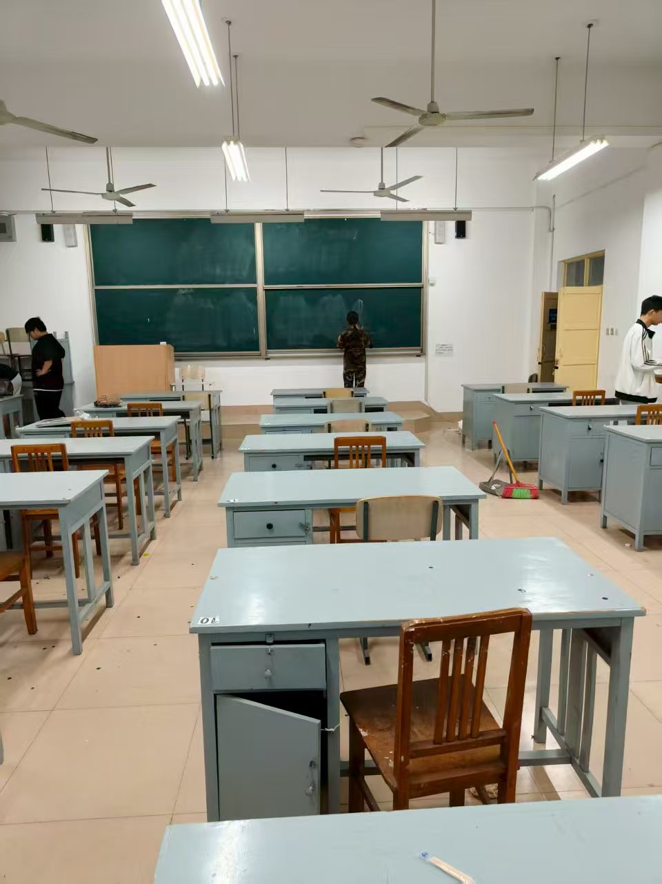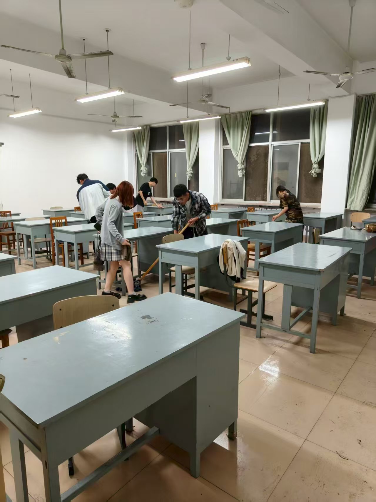 活动前期,学院统筹部署,学院结合实际制定方案,以班级为单位组建劳动小组,明确教室清洁的整体标准与方向,涵盖地面清扫、教学设施擦拭、课桌椅归位等环节,确保此次活动高效有序开展。活动期间,同学们积极响应、主动参与,以饱满的热情投入教室清洁工作。从清扫地面卫生死角,到擦拭门窗玻璃、整理桌椅,大家相互配合、高效协作,用实际行动改善学习环境。