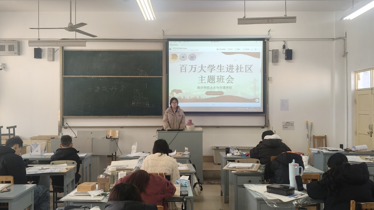 为积极响应全省“百万大学生进社区”专项行动号召,进一步增强同学们的社会责任感与实践能力,同时将专业所长与基层需求紧密对接,11月24日,土木与交通学院2025级各班在致远楼召开“青春献社区,专业践初心”主题班会。