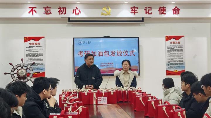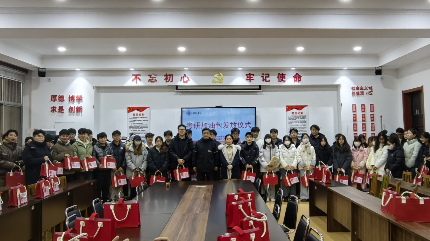 为给考研学子提供切实支持与暖心鼓励,营造积极向上的备考氛围,我院于12月12日中午在6104会议室开展考研加油包发放活动。学院党委书记刘金、院长唐魁、全体辅导员及26届考研学子出席活动。