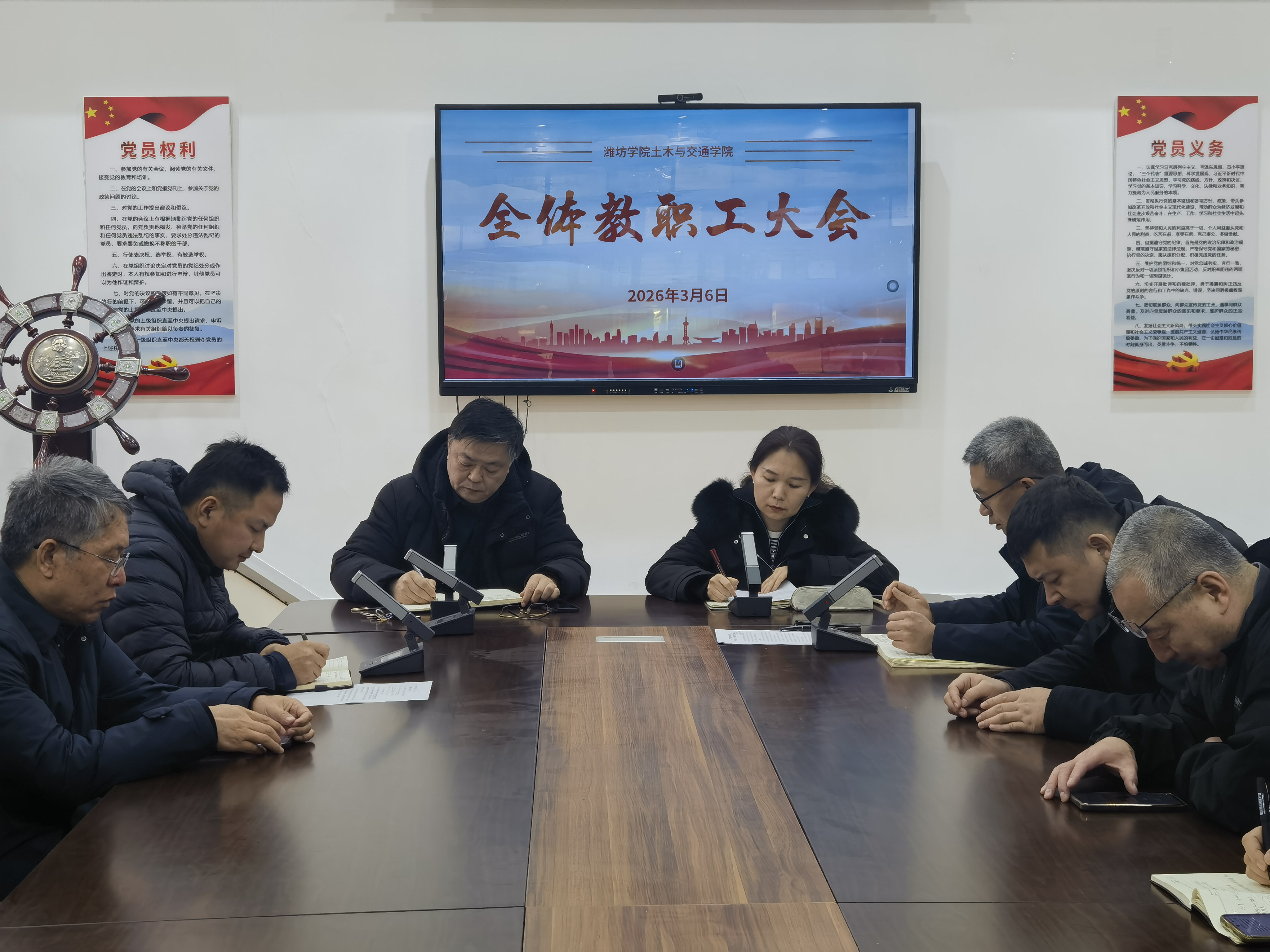 3月6日下午,土木与交通学院在6104会议室召开本学期第一次全体教师工作会议,部署新学期工作。会议由党委书记刘金主持。