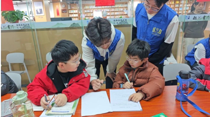 除了静态的图书整理,他还负责教育辅导工作。面对熙熙攘攘的人群,他学会了如何用温和而坚定的语言提醒大家保持安静;面对活泼好动的小朋友,他尝试用生动有趣的讲故事形式引导他们专注听讲。