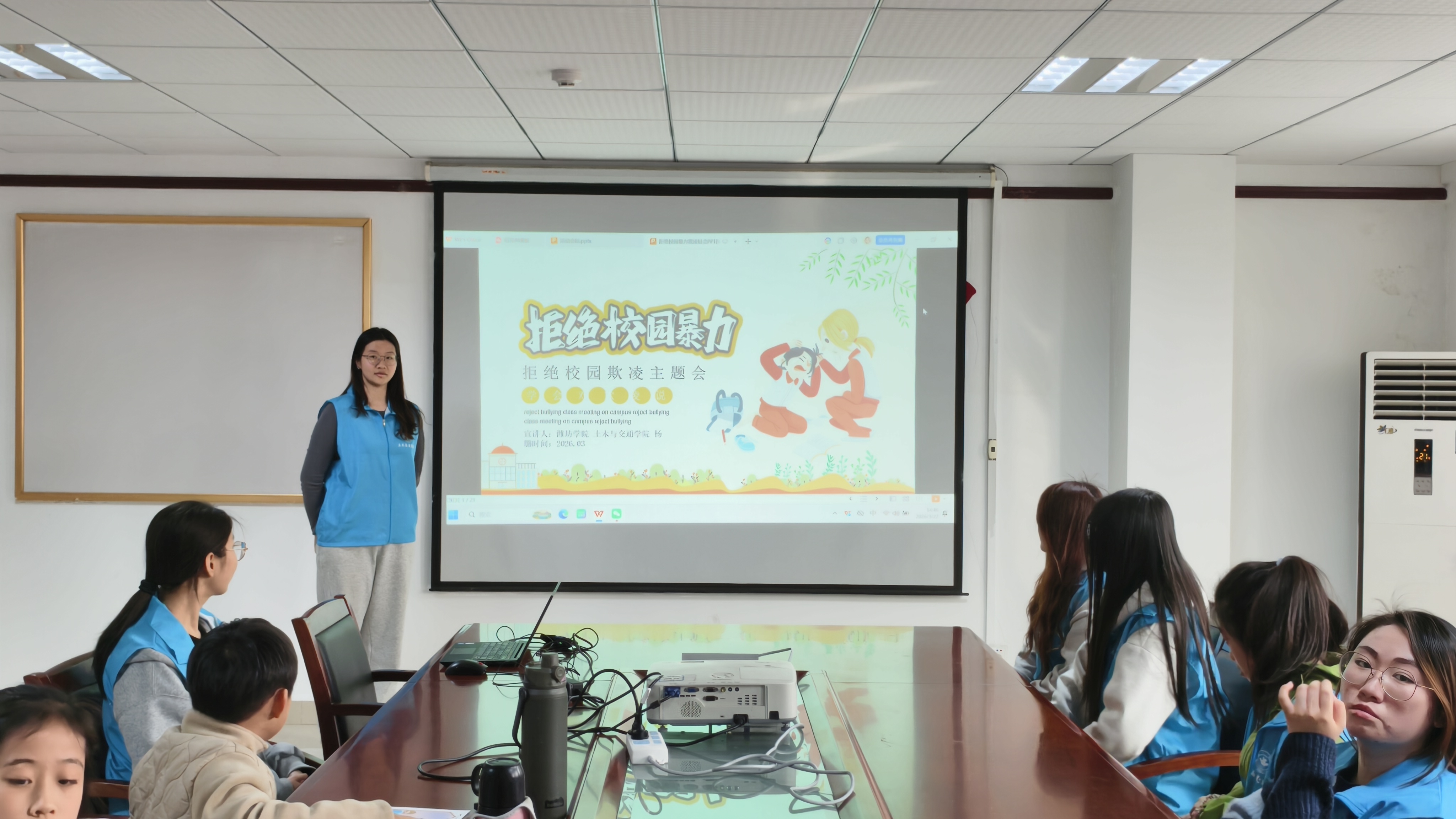 为强化青少年对校园欺凌的认知,推动社区、学校、家庭协同构建防治机制,为未成年人营造安全成长环境。2026年3月22日下午,土木与交通学院联合樱北社区于社区活动中心举办“070(零欺凌)勇敢说不”主题宣讲活动。
