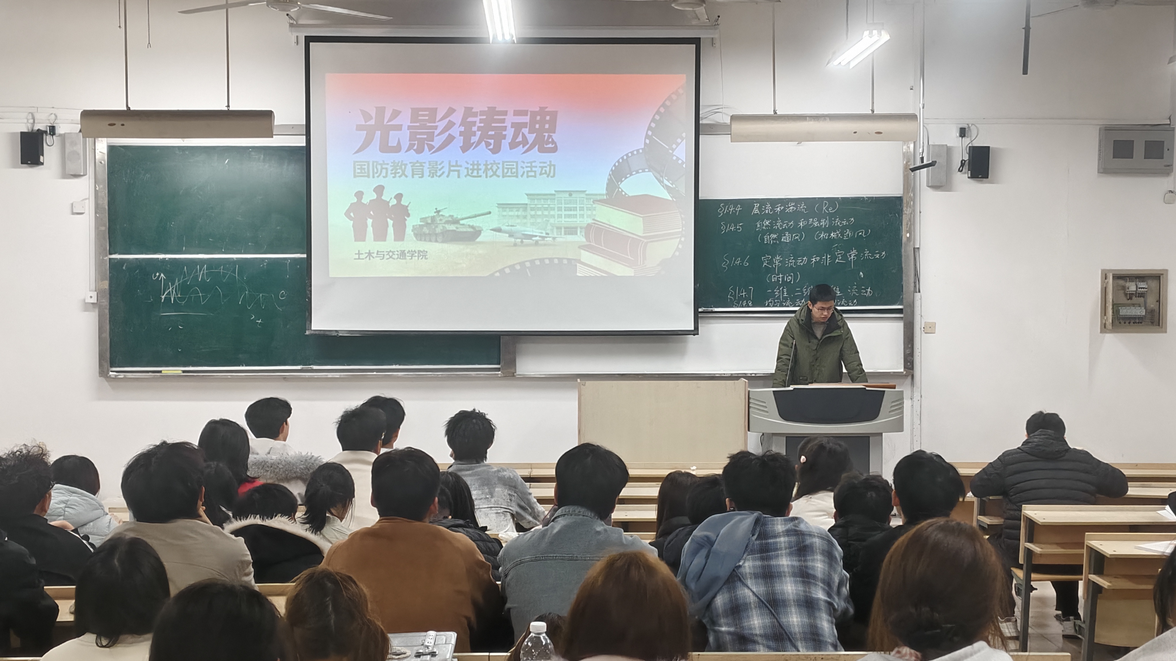 为深入贯彻落实全民国防教育要求,厚植青年学子爱国情 怀,3月30日晚,我院组织开展“光影铸魂”国防教育影片进校园 活动,集中观看国防教育题材影片《立夏的冬天》,旨在通过 光影艺术深化国防教育,引导青年学子厚植家国情怀,增强国 家安全意识。